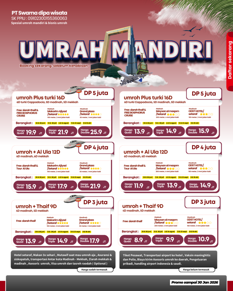 Tenang… tinggal klik tombol di bawah ini ↓ Program ini bantu kamu bisa berangkat Umroh dengan biaya lebih terjangkau, tapi tetap ibadah nyaman.